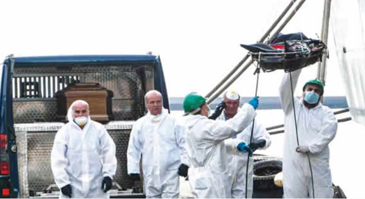 Rescuers recover dead bodies from the Spanish ship ‘Cantabria’ in the harbour of Salerno, Italy… on Sunday. Photos: Gettyimages.com